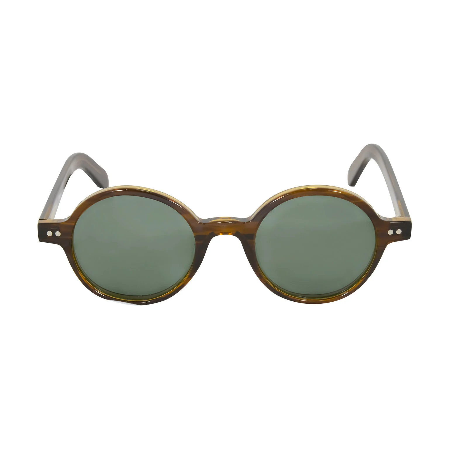 Les verres teintés dans une nuance de vert subtile offrent non seulement une protection contre les rayons du soleil mais ajoutent également une allure mystérieuse et intemporelle. Les petites touches dorées près des charnières et sur les rivets ajoutent un éclat discret et élégant. Les branches sont robustes et conçues pour un confort durable, assurant une bonne tenue sans compromettre le style.